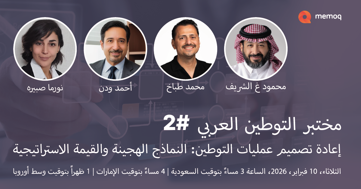 انضموا إلى ثلاثة من قادة التوطين من شركات استشارية كبرى ومزوّدي خدمات اللغة في دولة الإمارات العربية المتحدة والمملكة العربية السعودية والولايات المتحدة، حيث يشاركون كيف ينتقلون من نماذج عمل تقليدية تركز على التحرير اللاحق، إلى نماذج هجينة أكثر نضجًا تعيد التفكير في دور التوطين وتوسّع أثره داخل المؤسسات.