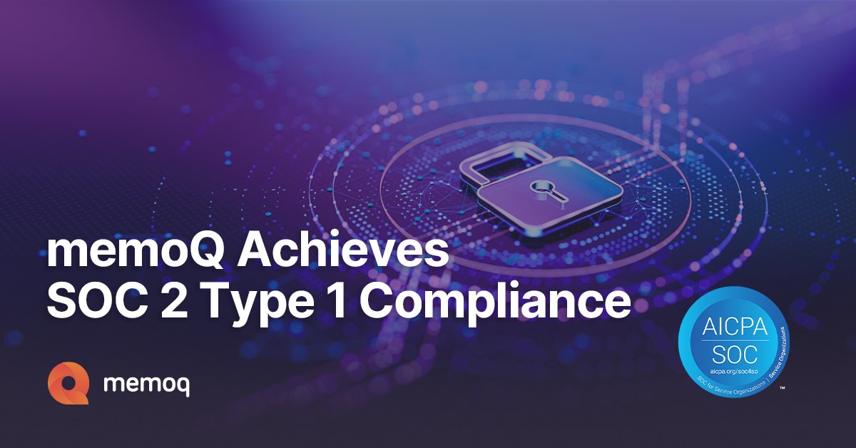 Budapest, October 14, 2025memoQ, a global leader in enterprise translation technology solutions, today announced that it has achieved SOC 2 Type 1 compliance, a global standard for information security. This achievement underscores memoQ’s commitment to protecting customer data and meeting the most rigorous enterprise security expectations in industries where trust is non-negotiable.